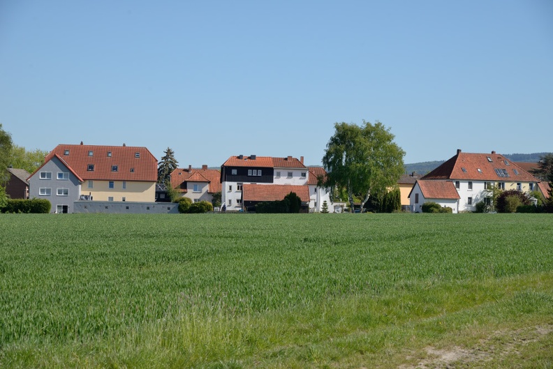 Kirchdorf südlich der Bahntrasse aus Westen gesehen